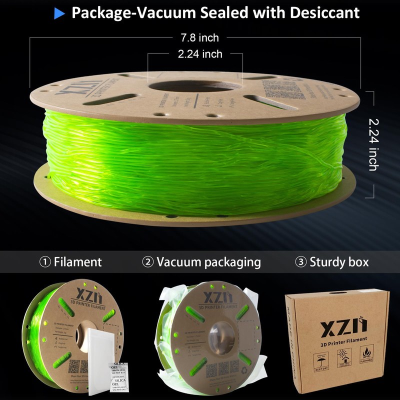- Smoother & More Stable: With over 9 years of 3D filaments R & D experience, XZN can manufacture all kinds of filaments on a large scale with premium quality. Complete drying for 24 hours before vacuum packaging, clog-free, bubble-free, and great Adhesion, enabling much smoother and more stable printing. Recommended printing temp 200-230C (392-446F), hot bed temp 50-60C (122-140?H), nozzle size 0.6mm.