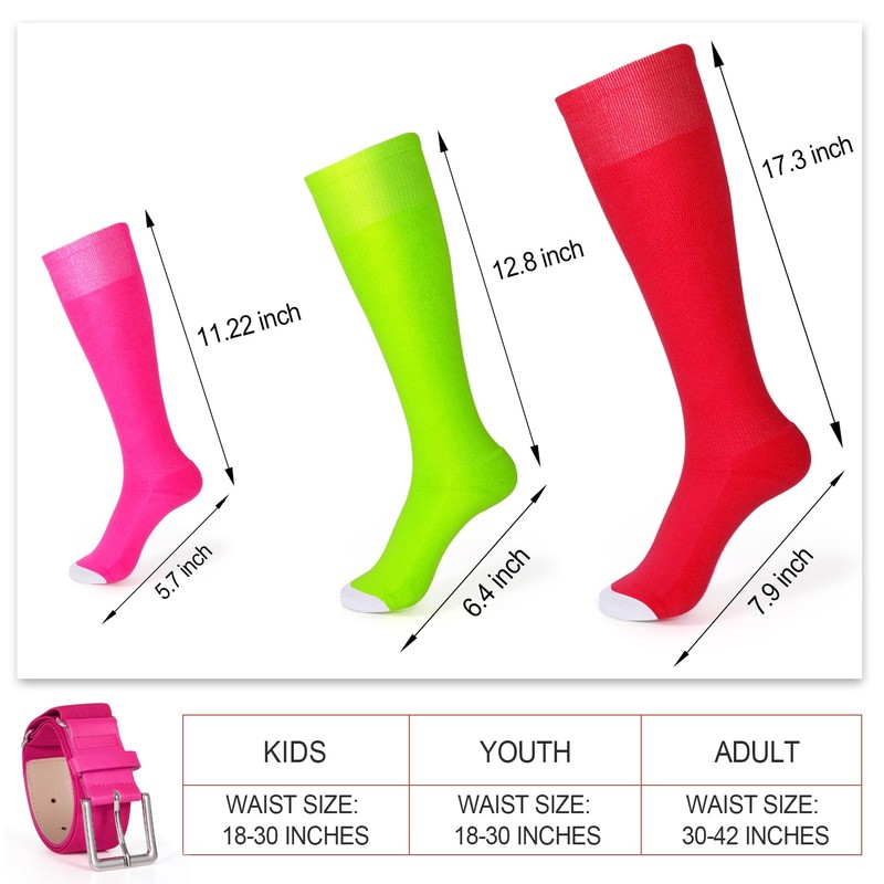 - BASEBALL SOCKS & BELT COMBO SET - Our baseball belt and socks combo set contains 2 pairs of solid color softball socks and 1 piece adjustable elastic softball belt that can be easily adjusted to fit most waist sizes.