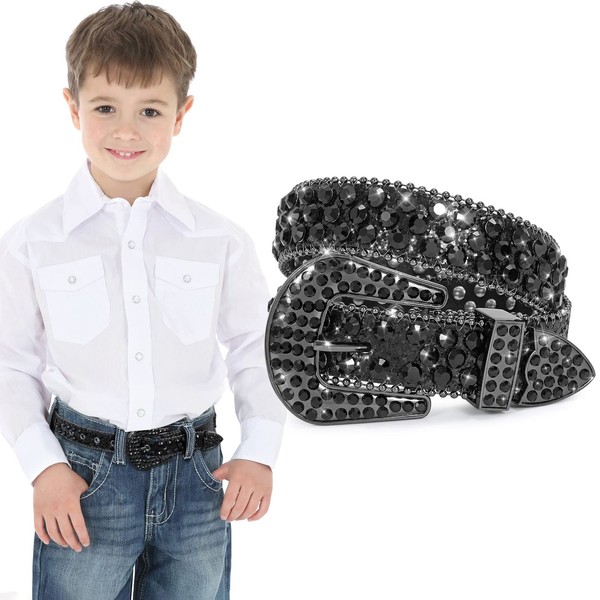 XZQTIVE Children's Glitter Belt for Boys Girls Children Rhinestone Belt Western Cowboy Cowgirl Children's Belt with Diamond Crystal Waist Belt Bling Belt (Silver, S), c-all black
