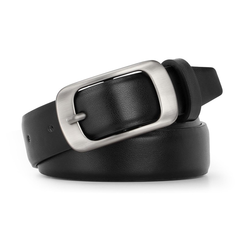 XZQTIVE Women Leather Belts for Jeans Pants, Black/Brown Waist Dress Belts with Silver Buckles, Black