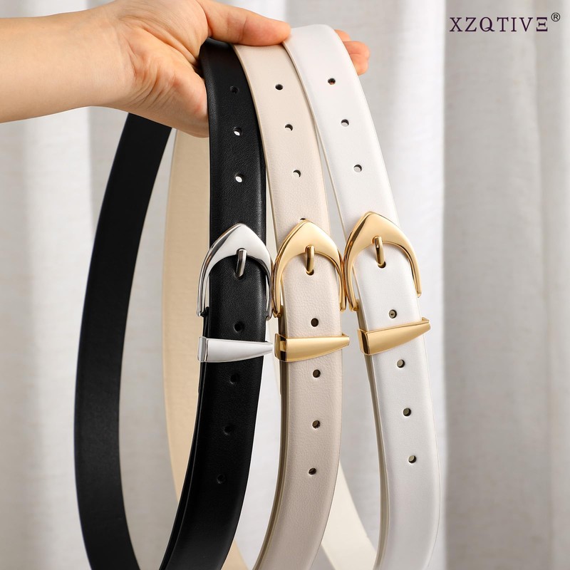 XZQTIVE Women's Leather Belts, Classic Minimalist Design For Jeans Pants Dresses, Black Belt With Sliver Buckle
