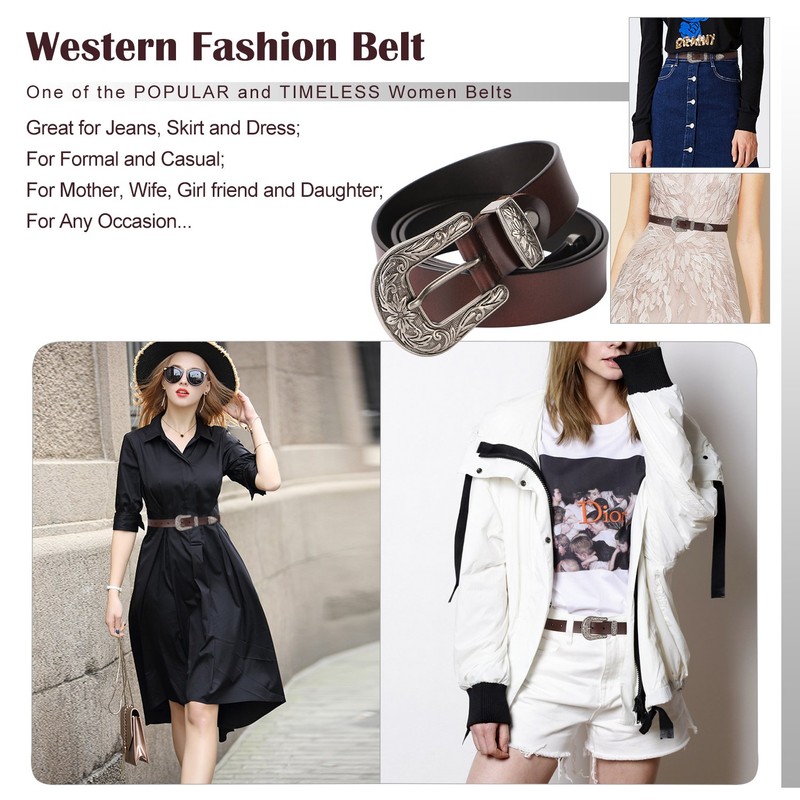 - WESTERN COUNTRY BELTS: The women belts for country outfit jeans pant design with carved floral patterns on the alloy buckle and tail, adding a touch of elegance and nostalgia showcasing the classic Western aesthetics.