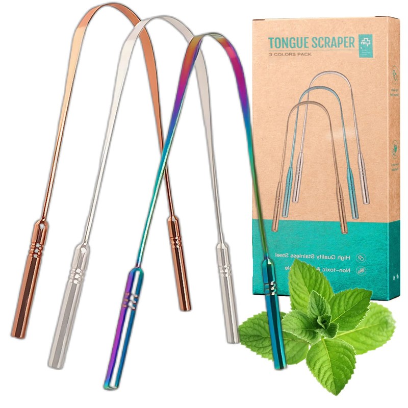 • DELIVERY ITEM: 3 Pack Stainless Steel Tongue Scraper, the Tongue Cleaner can effectively reduce toxins and bacteria on the tongue that cause bad breath, and enhance the sense of taste.