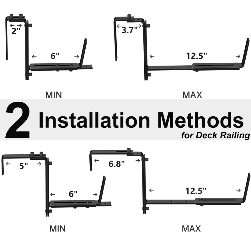 - Adjustable Planter Bracket: The set of 6 deck railing adjustable planter box brackets with adjustable bottom design, the flower box bracket can be adjusted from 6" to 12.5" in width. (Note: Planter pot isn't included)
