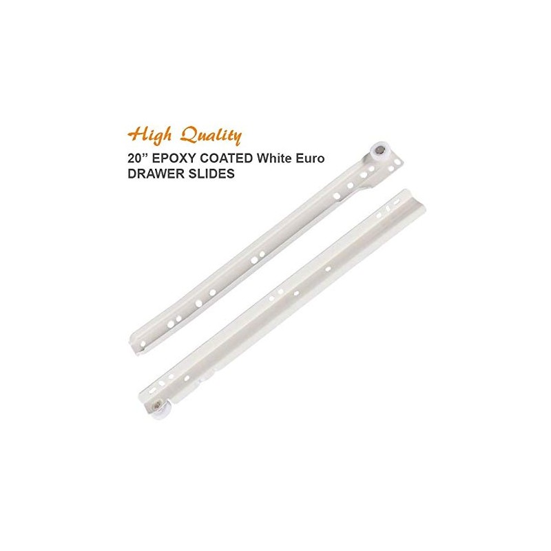 Y&Y Decor White Epoxy Coated Euro Drawer Slides 12"-22" - 10 Pair Pack (20")
