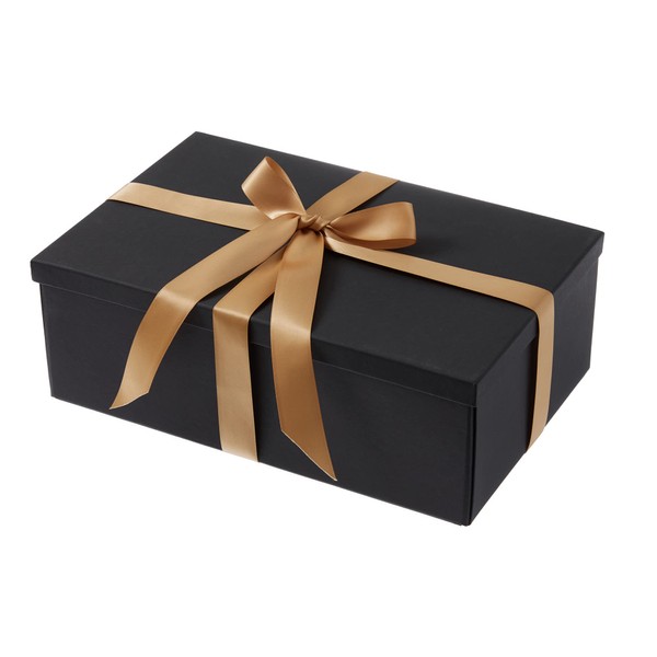 - Box Dimension - 12" L x 8" W x 4" H, Black. You will receive a black lid, a black rectangle box, a gold ribbon. For any accessories lost or product damaged, please feel free to contact us via Amazon