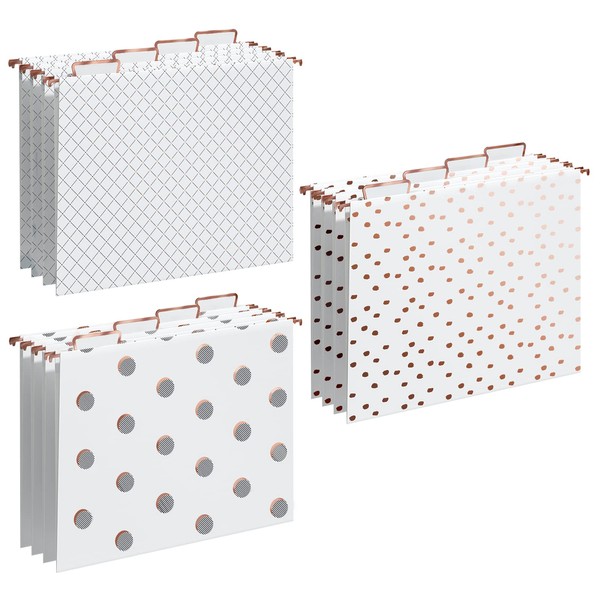 Y YOMA Rose Gold Hanging File Folders with Reinforced 1/5-Cut Tabs, Letter Size(12 Pack), Assorted 3 Styles