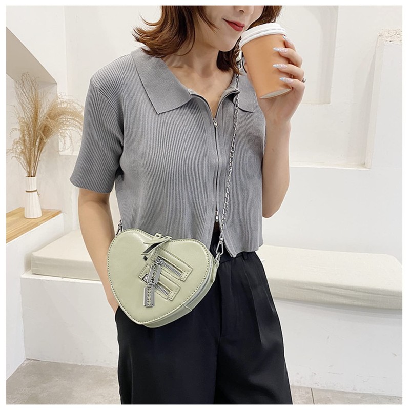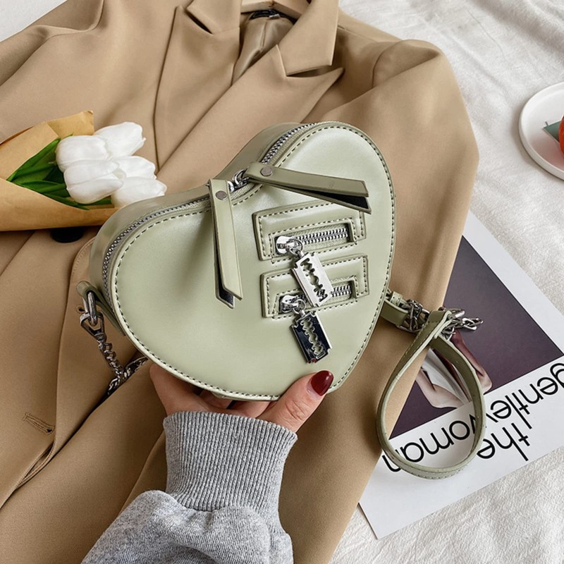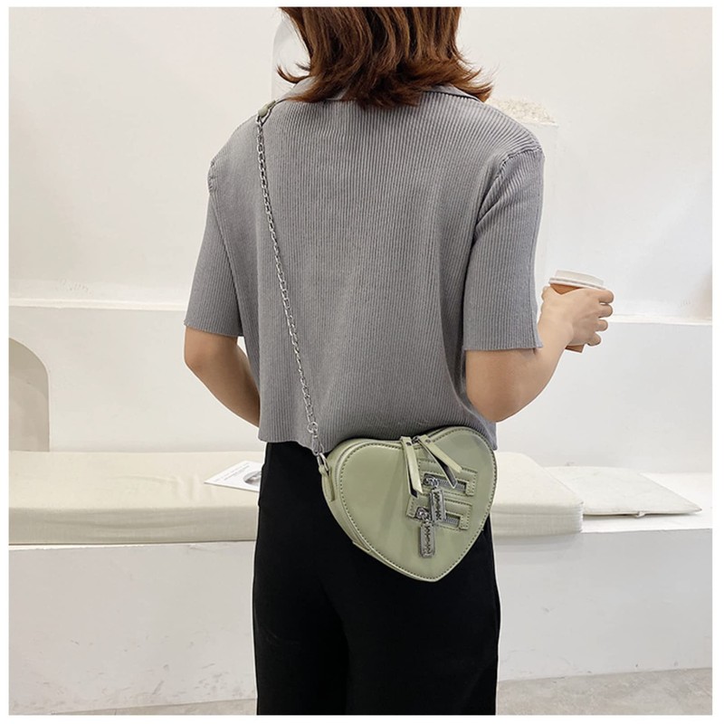 Y2K Heart Shape Gothic Purse Chain Shoulder Bag Kawaii Emo Grunge Old Aesthetic Cute Dark Academy, Green, Classic