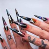 Y2K Press on Nails Long Stiletto Fake Nails Colorful Smudges Irregular Silver...