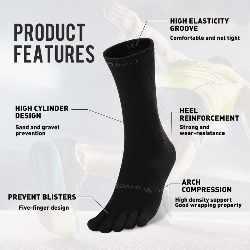 - Prevent Blisters: Hand-lined seamless stitching makes these running socks flat on the interior, protecting your feet from blisters and friction.Thanks to the barriers they create, you can finally get away from those painful blisters and enjoy an active lifestyle.All athletic five toe socks will not lost elasticity or shrink even after many times washing