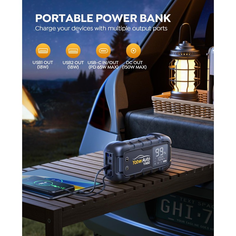 YaberAuto Jump Starter 8000A 65W Fast Charging (All Gas/12.0L Diesel) Portable Car Battery Jump Starter Pack, Jump Box Car Battery Jumper Starter Portable Jumper Cables, 150W DC, 600LM Lights