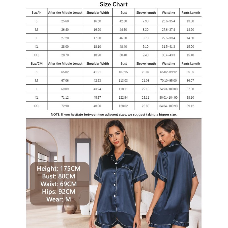 - KINDLY REMIND: Please refer to the satin pajama set women size chart in the picture before ordering, available in sizes S-XXL. Washing tips: It is recommended to use the gentle cycle of the washing machine or hand washing to avoid shrinkage or affect the softness of the pajamas.