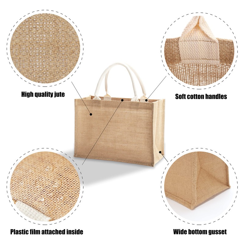 YACEYACE Jute Travel Tote Bags, Set of 10 Burlap Bags, Medium 14.5" x 6.7" x 10.2", Reusable Bag for Party, Wedding, Beach, Bridesmaid