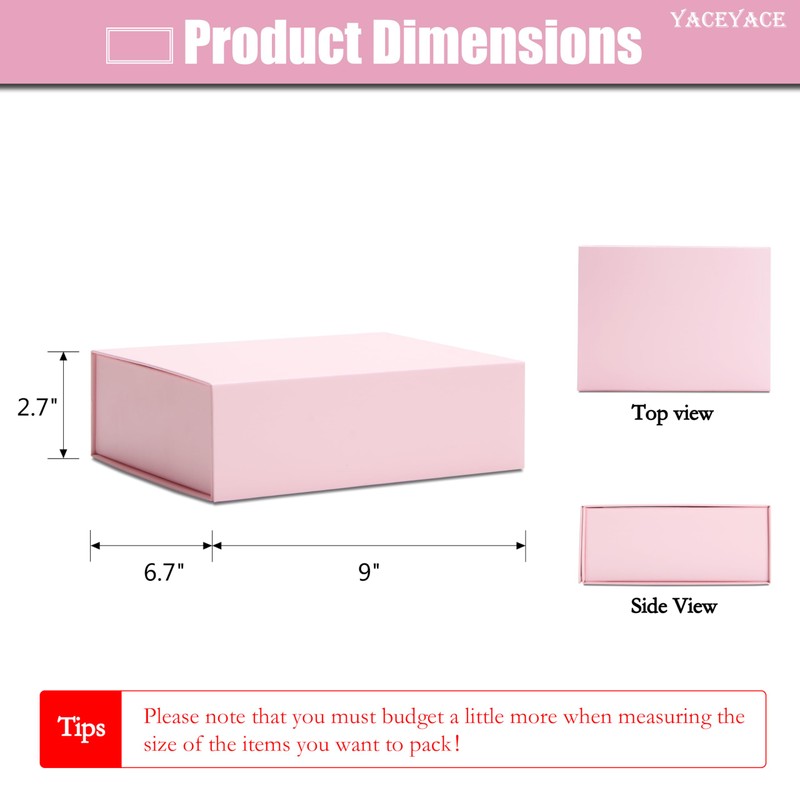 YACEYACE Pink Gift Wrap Box Bulk, 1Pcs Pink Magnetic Hard Gift Box, Small Box for Party, Anniversaries, Mother's Day, 9x6.6x2.7 inch