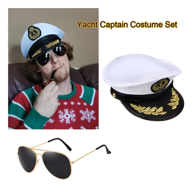 - This captain costume set includes: 1 x Yacht Captain Sailor Hat; 1 x Aviator Sunglasses.