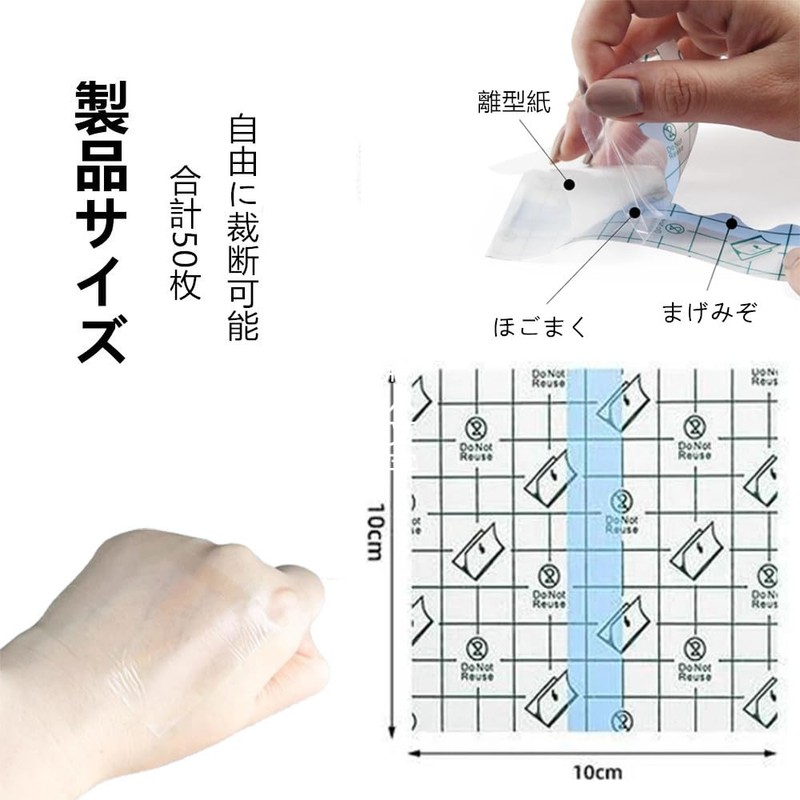 - 【セット内容・素材】防水フィルム50枚、色は透明で、幅広い用途に使用できるため。ポリウレタン(PU)材料から出来上がったフィルム。