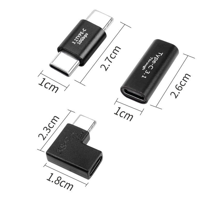YACSEJAO USB C Adapter Kit (3 Pack) USB C 3.1 90 Degree Male to Female Adapter USB C Male to Male/Female to Female Adapter Converter for Laptop Phone Tablet Power Bank, etc