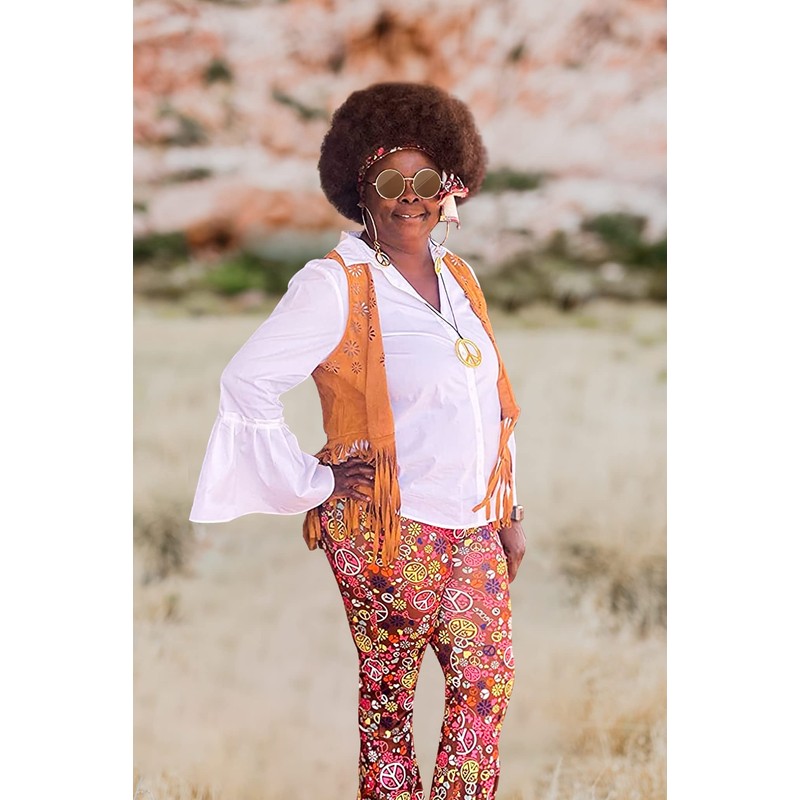 - 【Symbol des Friedens und der Liebe】 - Dieses Hippie-Kostümset für Frauen aus den 60er und 70er Jahren ist mit Symbolen des Friedens und der Liebe bedruckt. Gepaart mit dem gleichen Stirnband, den Peace-Zeichen-Ohrringen und der Halskette werden Sie attraktiver. Mit diesem angesagten Look können Sie zeigen, wie sehr Sie die universelle Liebe und den Weltfrieden lieben.