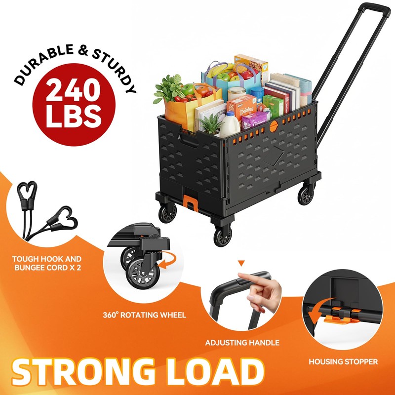 - High-Strength Materials, Safety and Reliability: Frame Crafted from special thickened steel,rolling crate is made from high-quality and sturdy environmentally friendly polypropylene casing. From moving furniture to hauling groceries, this portable moving dolly cart’s durable design ensures reliable performance.
