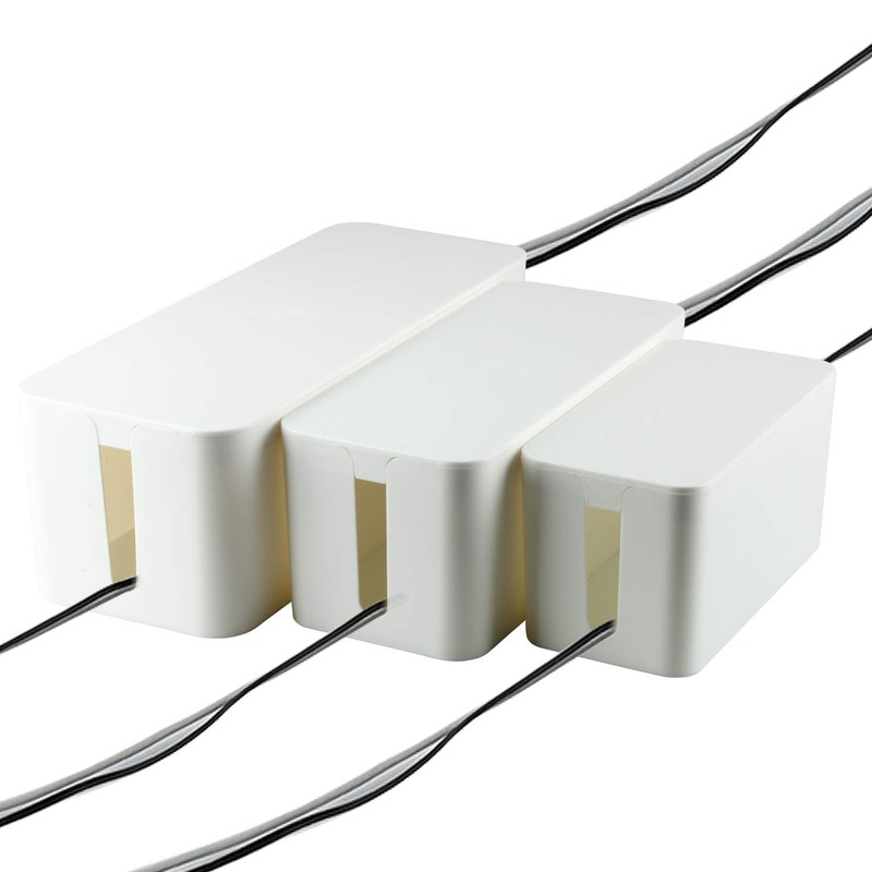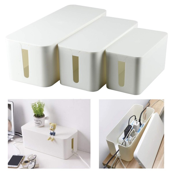 YaeCCC Cable Management Organizer Box Power Strips Hider Power Cords Hider for Desk, TV, Computer, USB Hub,Cords (Set of Three) White