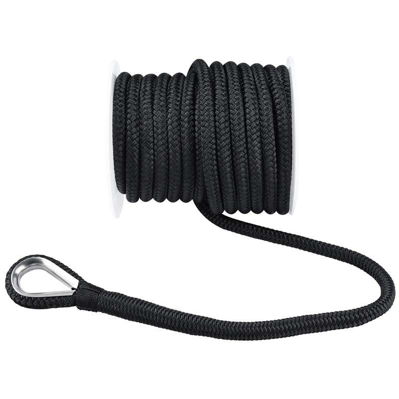 - Double Braid Nylon Anchor Line Anchor Rope Marine Rope Black with Stainless Steel Thimble On One End;