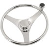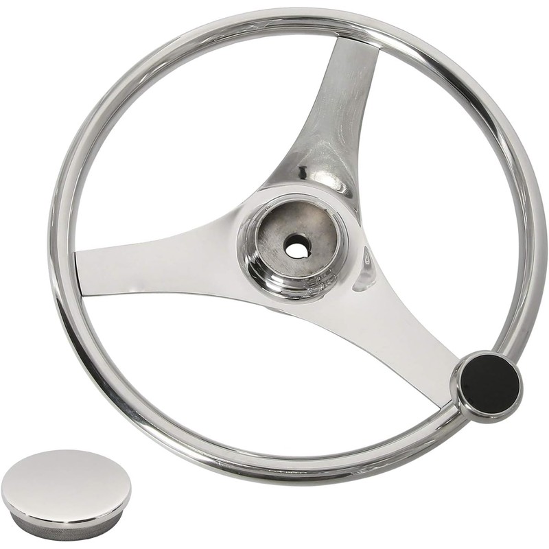- 3 spoke stainless steel boat steering wheel. 13.5'' diameter.