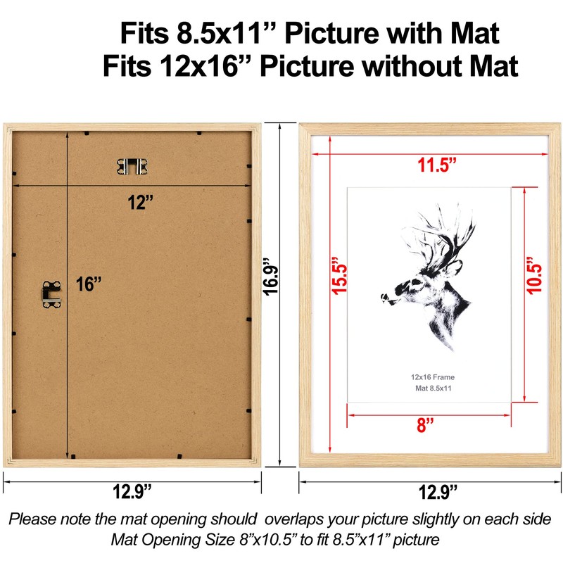 - Display & Art Size: Display both horizontally and vertically on the wall. With the mat opening 8"x10.5", perfectly showcases 8.5”x11” photos or remove the mat to display 12”x16” poster, great for home or office wall décor. Please note: for holding the image firmly, 1/4 inch of the image edge will be covered by the frame or mat.
