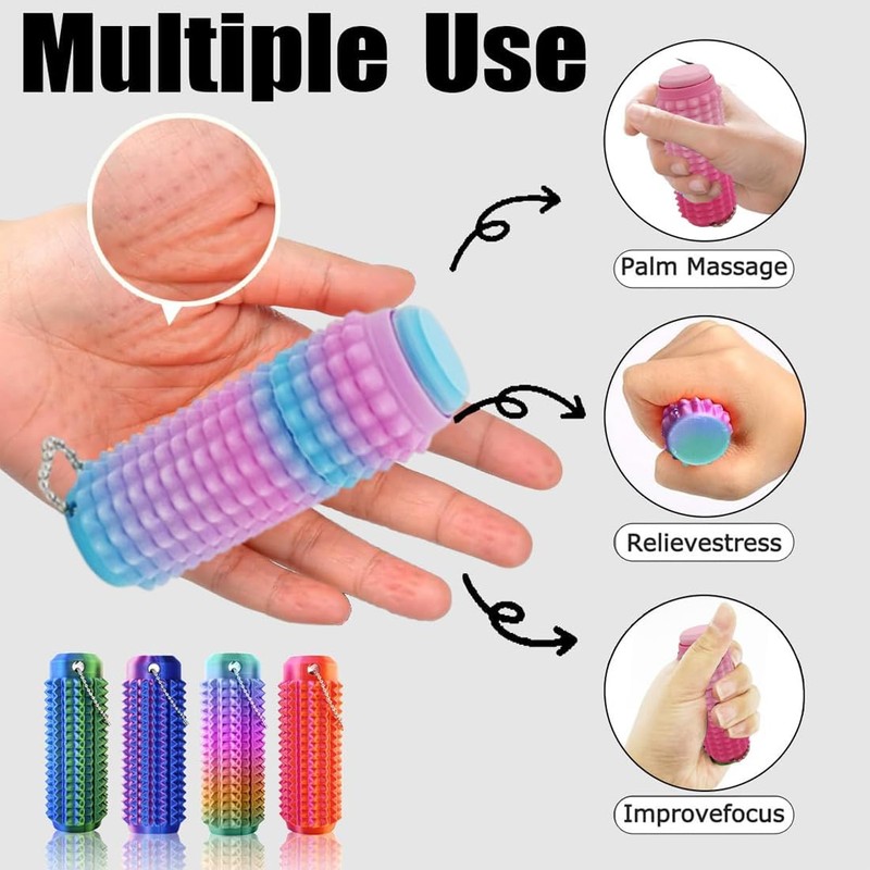 STRESS RELIEF Upgraded stress relief toy, our outer ring is designed with spikes that stimulate target acupuncture points. Small hedgehog ball. Acupressure exercises effectively relax the finger muscles and relieve discomfort caused by long working or playing.