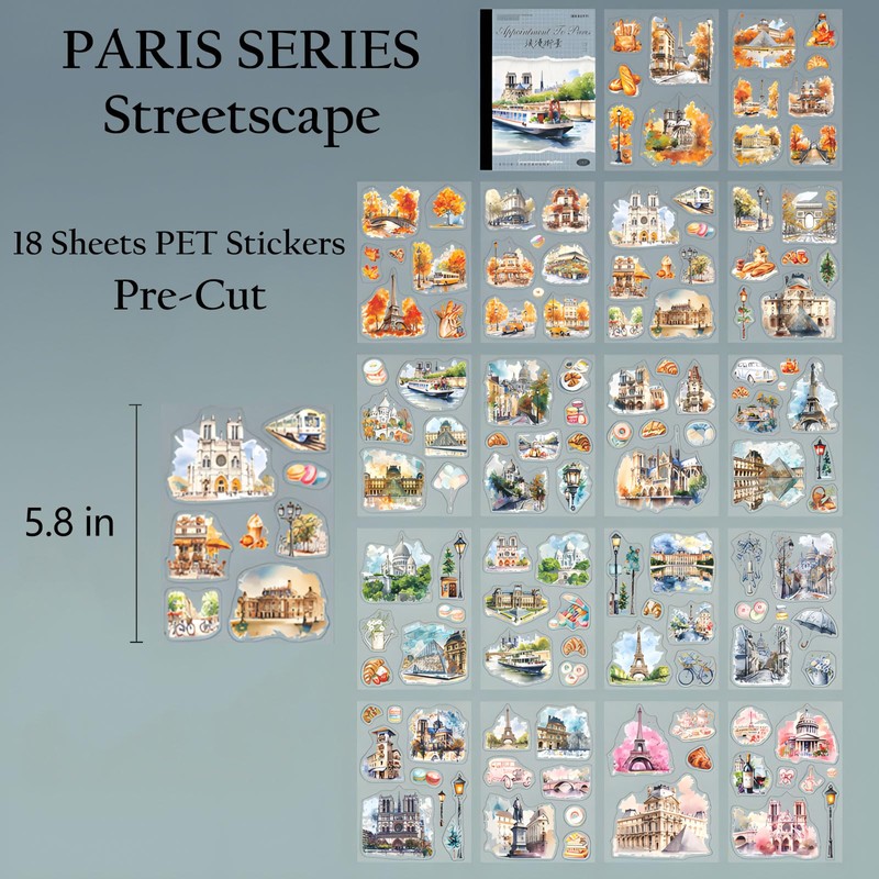 YagCu Journaling Stickers, Paris Series Scrapbook Sticker, Streetscape Junk Journal Supplies, Pre-Cut Aesthetic Scrapbooking for Adults, Decorative Arts Craft Collage