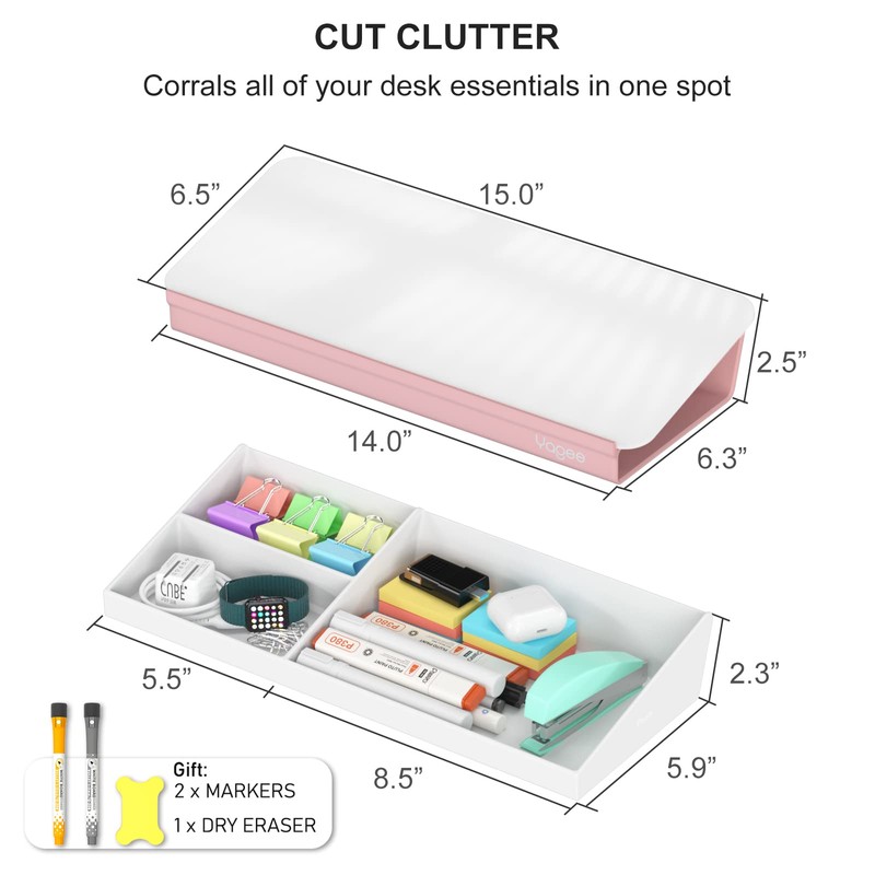 YaGee Desktop Whiteboard, Split Design Desk Dry Erase Board with Organizers for Office Accessories, Home, School Supplies