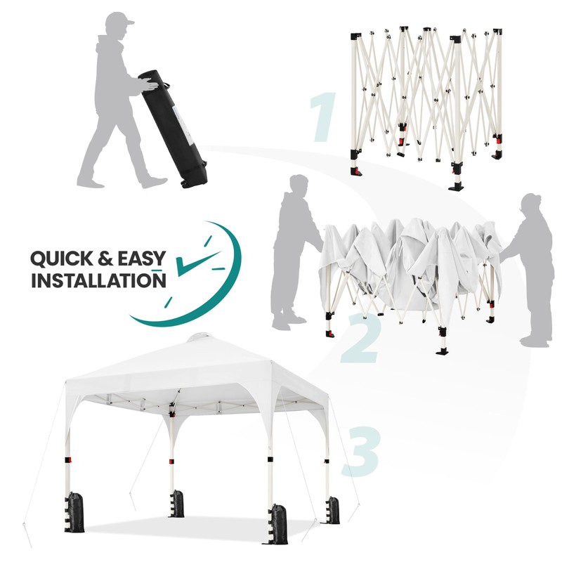 • Versatile Outdoor Retreat: Offering 100 sq. ft. of shade for up to ten people, this pop-up canopy transforms any outdoor space into a welcoming spot for weddings, parties, camping, or marketing events