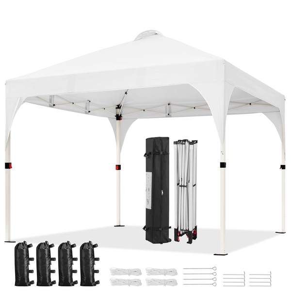 Yaheetech 10x10 Pop Up Canopy Tent with Vent, Easy Set Up Tent, Instant Sun Shelter Canopy with Wheeled Bag, 4 Sandbags, 12 Stakes & 4 Ropes, for Parties, Beach, Outdoor, Silver-Coated White