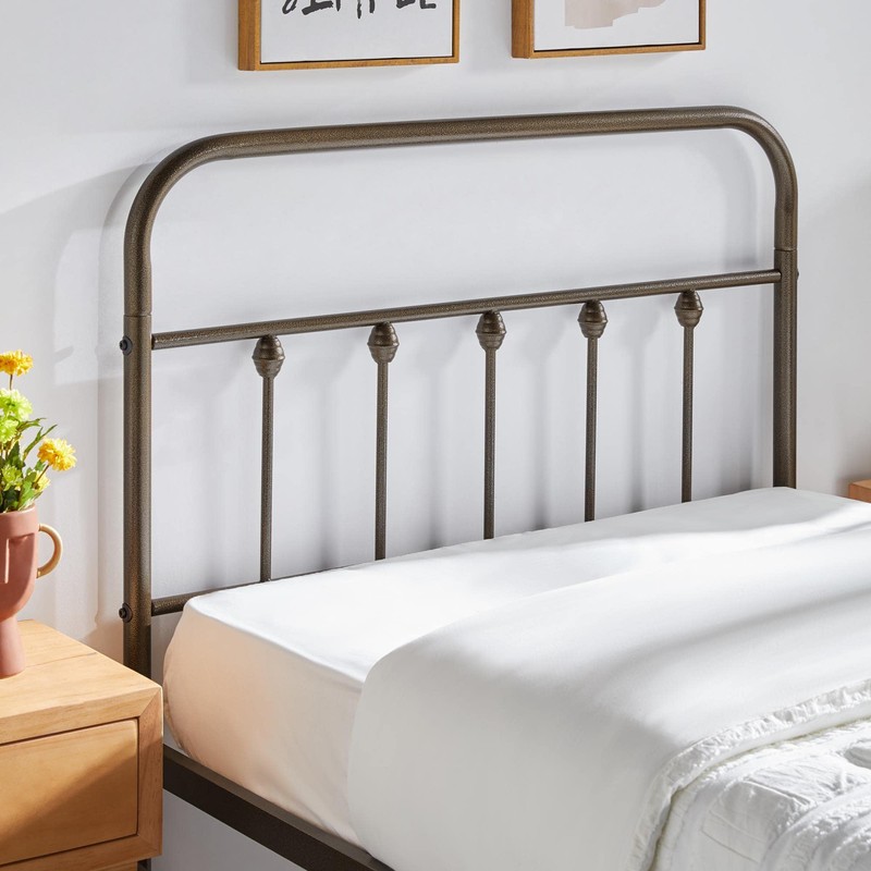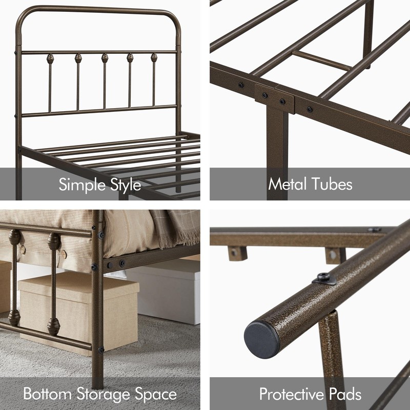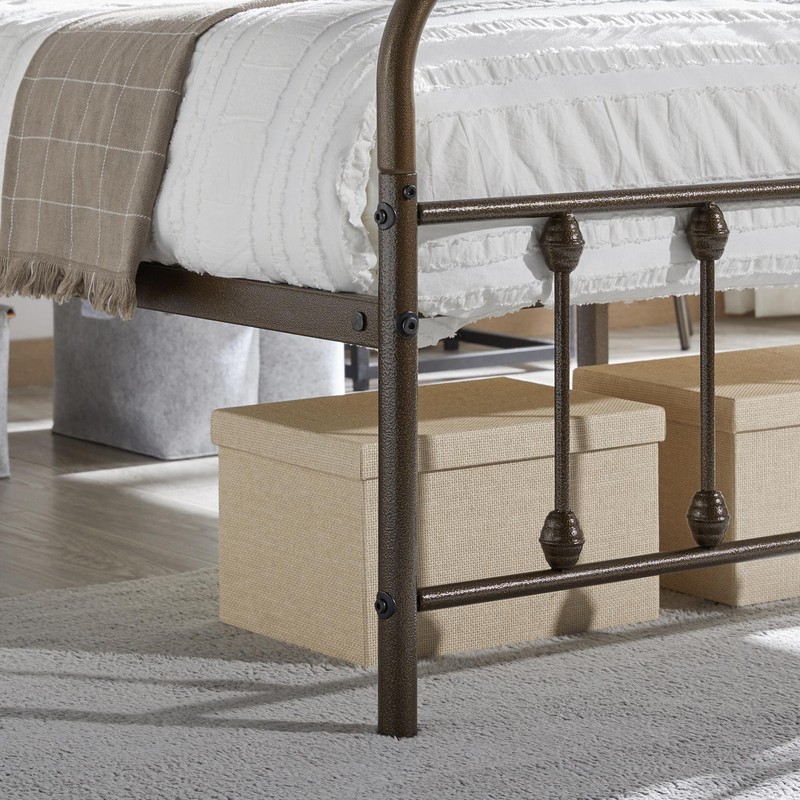 - Classic and Romantic: This 2-piece farmhouse-style bed features curving lines, stunning spindle ornaments and bronze finish, giving your room a romantic and luxurious impression. The rounded edges complement the coldness of metal, making it easy to mix and match with glam, contemporary, and Bohemian home styles