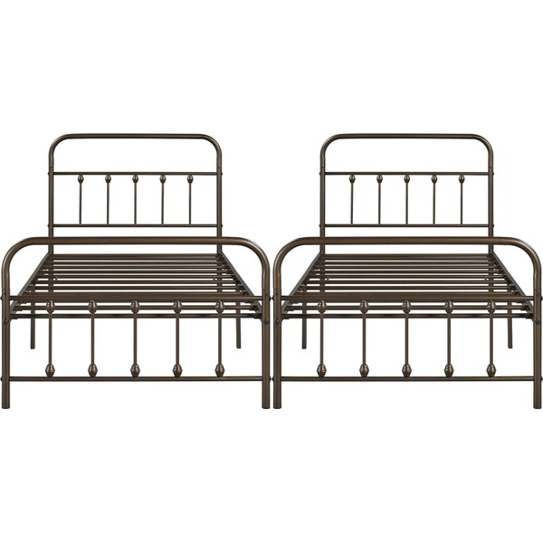 Yaheetech 2 Pcs Twin Bed Frame Metal Platform Bed with Victorian Style Iron-Art Headboard/Footboard/Under Bed Storage/No Box Spring Needed Bronze