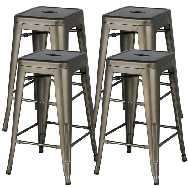 Yaheetech 24inch Metal Bar Stools Counter Height Barstools Set of 4 High Backless Industrial Stackable Metal Chairs Indoor/Outdoor, Gun Metal