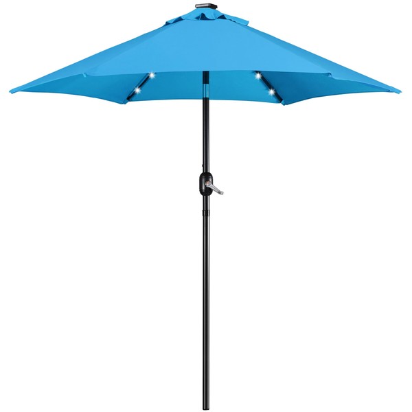 Yaheetech 7.5FT Solar Umbrella LED Lighted Patio Umbrella Waterproof & UV Protection, Market Sunshade w/Tilt and Crank for Backyard, Deck and Pool, Sky Blue