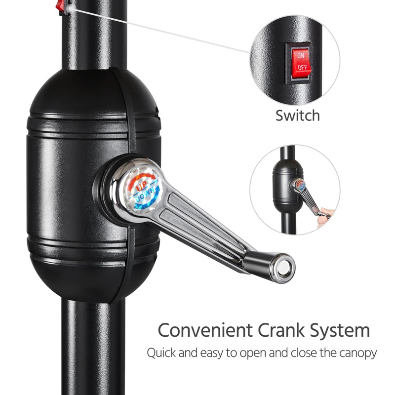 - Convenient Crank Lift & Tilt Adjustment: The crank market umbrella is effortless to operate by turning the crank lever. The umbrella canopy can be manually tilted in 2 directions with a push at the button to create a more flexible and versatile shade
