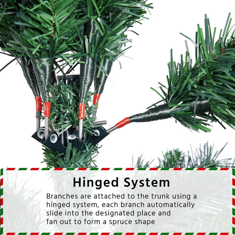 • Easy to Set Up: Our tree is made based on hinged system, the tree body is divided into 3 sections with label on them. You could set up this tree by simply insert one of tree parts on another. The stand can also be effortlessly folded out and connect to tree body with screws. It is suggested to wear gloves while setting up and fluffing out, just like a real spruce, the “needles” can be a bit scratchy.