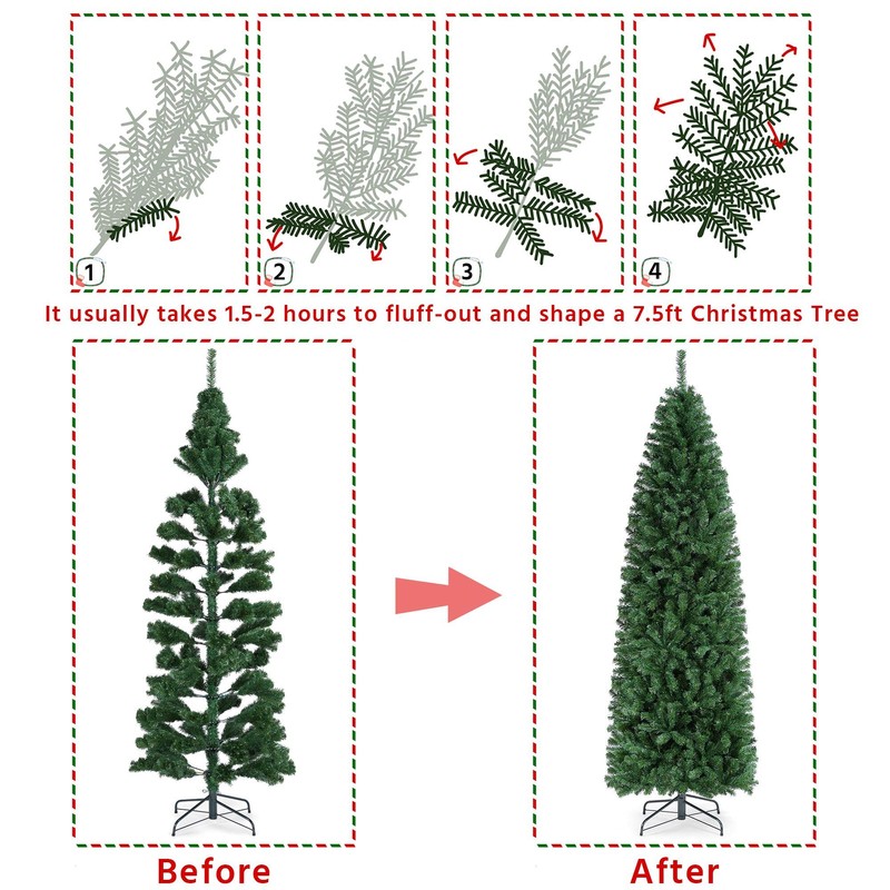 • Slim Pencil Tree: Slim pencil shape of the tree body makes it space-saving. This artificial Christmas tree are hinged with plentiful tips, which give a full and fluffy look from any angles in your decorated places. Green and thick finish of branch tips enhanced the natural leafy vibe of this decorative holiday tree. Lush tips also leave more space for your other festive ornaments.