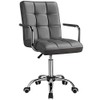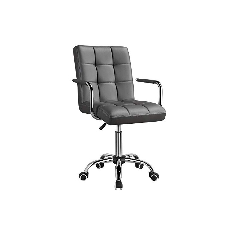 YAHEETECH Adjustable PU Leather Office Chair, Mid Back Desk Chair with Armrests/Large Seat, Task Chair with Wheels, Grey