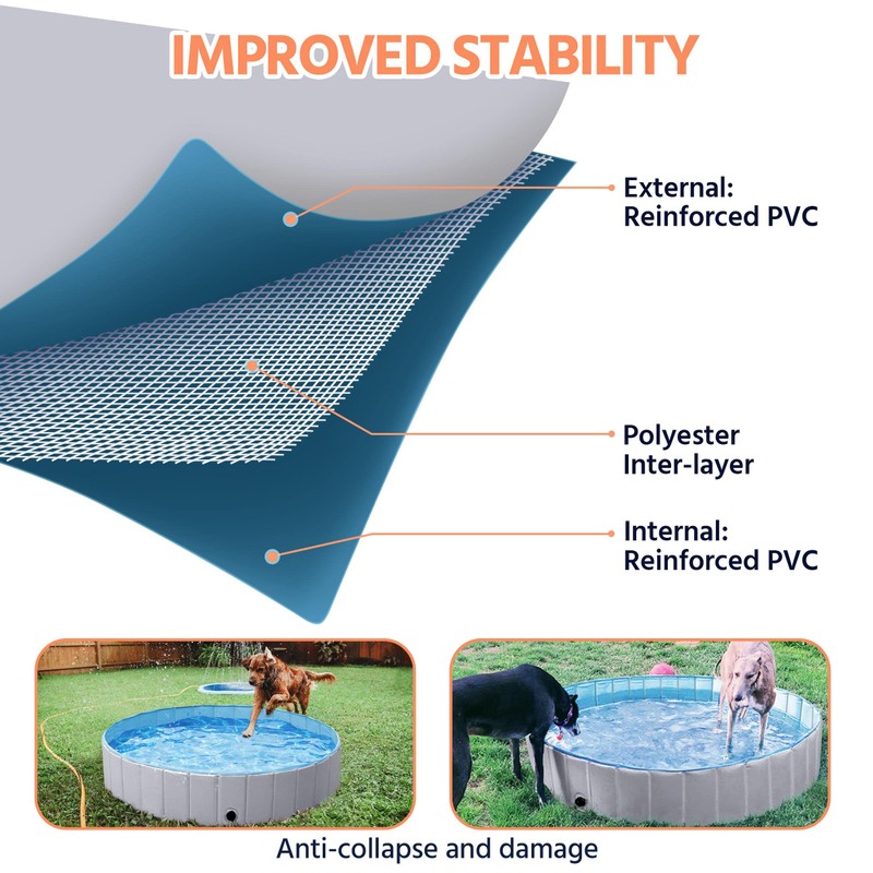 - Premium Materials: The pet pool is made of waterproof PVC and polyester mesh in the interlayer, and the interior material is made of durable PP boards. The quality materials are strong and durable, and wear-resistant for long-time use