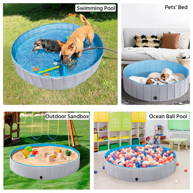 - Versatile pool: This pet swimming pool can be used both indoors and outdoors. The pool can be filled with water, a thin layer of sand or sea balls to build varieties of entertainment for the little guy and pets