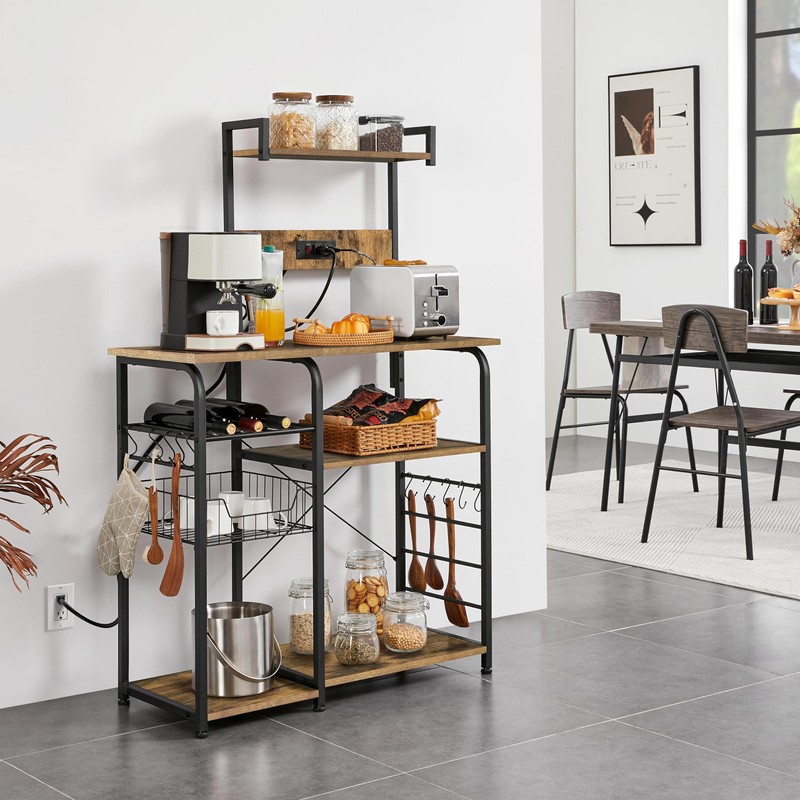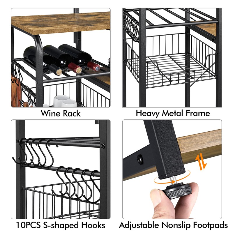 - 🍴【Rustic Industrial Style】Combining distressed woodwork with a frosted iron frame, this kitchen baker’s rack will introduce a visual aesthetic that is at once both rustic and traditional to your abode. It can coordinate with a variety of styles, especially rustic barn-style and industrial design.