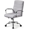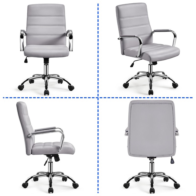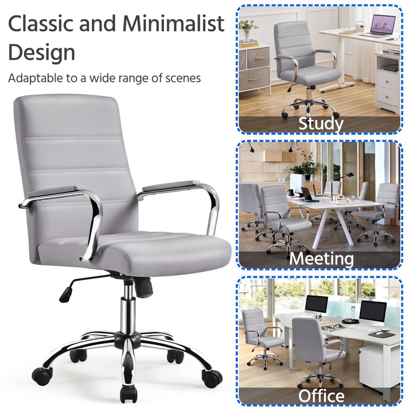 Yaheetech Mid-Back Office Chair with Arms Swivel PU Leather Height Adjustable Office Executive Chair, Light Gray
