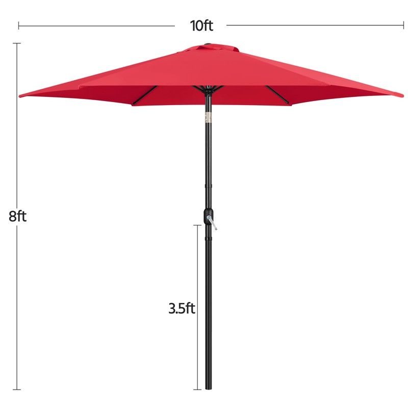 Yaheetech Patio Umbrella, 10FT Outdoor Table Market Umbrella with Push Button Tilt and Crank & Sturdy Ribs, Yard Sun Shade for Garden, Deck, Backyard, Pool, Red