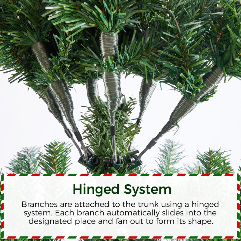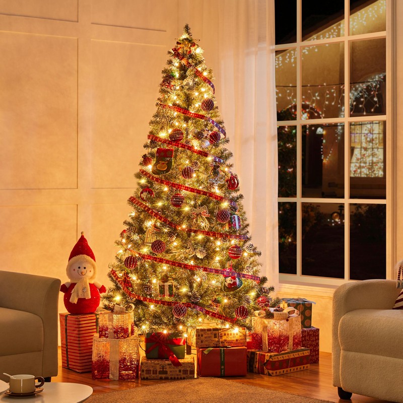 - Auto-drop Hinged Branches: With its auto-drop hinged design, the branches of this pre-decorated Christmas tree effortlessly fall into place, saving you time and effort on shaping and fluffing