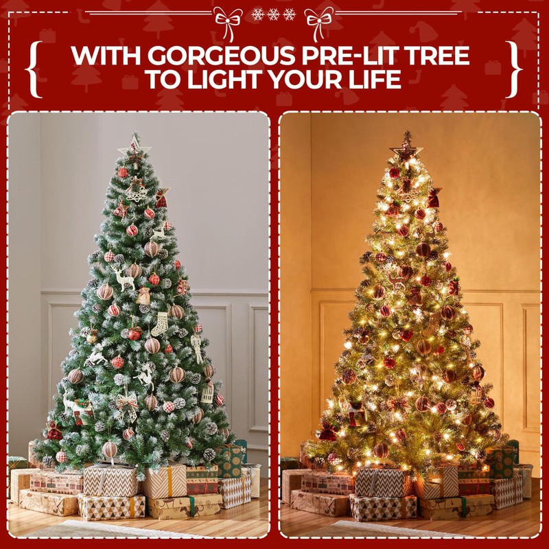 - Pre-lit with Pinecone Decorations: Pre-installed with beautiful lights and pinecones, the Christmas tree saves you time on decorating, allowing you to enjoy a ready-to-go tree with minimal hassle