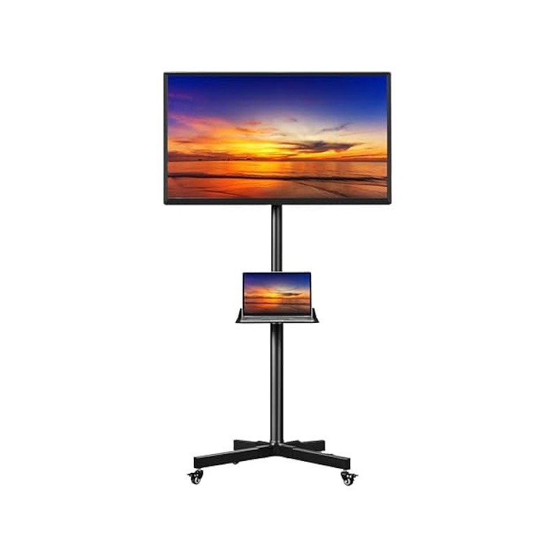 Yaheetech Rolling TV Stand for 23-60 inch Screens Mobile TV Cart with Lockable Wheels Universal Floor TV Stand, Outdoors Height Adjustable TV Trolley with Storage Shelf, Max VESA 400x400mm, Black