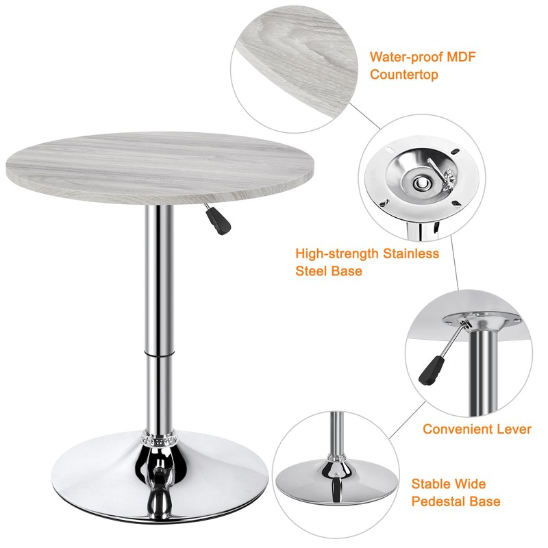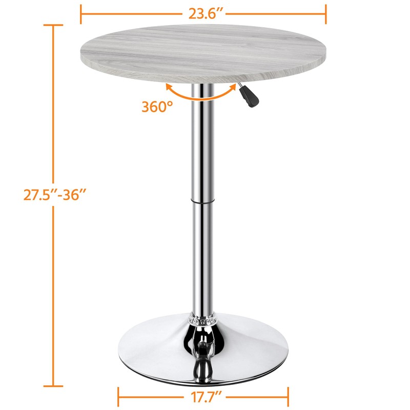 Yaheetech Round Pub Table Height Adjustable with 360 Swivel MDF Tabletop for Dining Bistro Cafe Home Bar, Grey