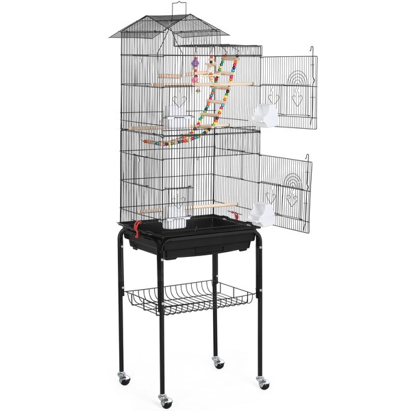 Yaheetech Bird Cage 64-inch Play Open Top Medium Small Parrot Parakeet Bird Cages with Detachable Rolling Stand for Parrot Lovebirds Finches Parakeets Budgie Parrotlet Conures, Pet Flight Birdcage